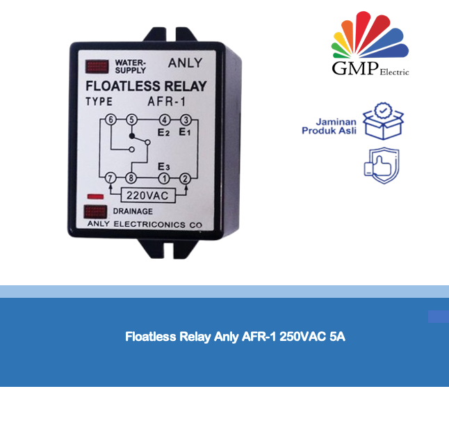 Anly AFR-1 adalah floatless relay yang berfungsi sebagai pengendali otomatis untuk sistem level air, digunakan pada tangki, sumur, maupun aplikasi industri. Relay ini bekerja dengan prinsip deteksi level cairan tanpa pelampung mekanis, sehingga lebih tahan lama dan minim perawatan. Dapat diandalkan untuk mencegah kondisi tangki kosong atau meluap dengan kontrol yang presisi.