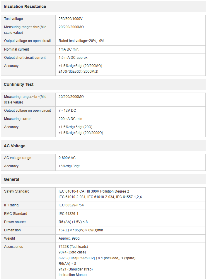 • Auto null function to automatically subtract the test lead resistance before displaying the real continuity resistance value