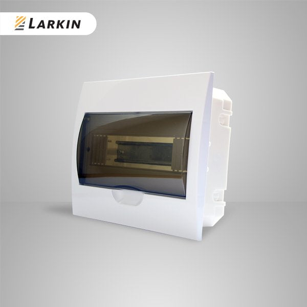Larkin Box MCB LX6I Inbow 6 Group dengan Panjang 207mm, Lebar 222mm dan Tinggi 85mm. Warna Putih, Tutup Transparan dan sudah Termasuk Rail dan Grounding didalamnya