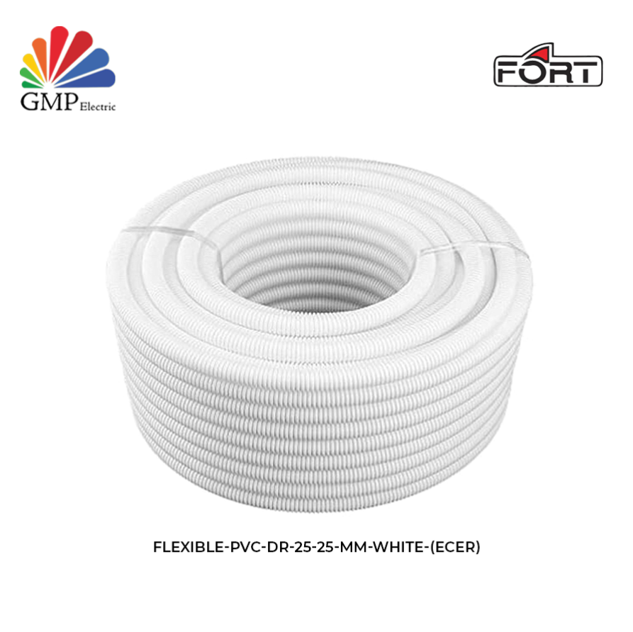 Flexible PVC DR-25 adalah selang pelindung kabel (flexible conduit) berdiameter 25 mm berwarna putih, dirancang untuk melindungi kabel listrik dan kabel data dari goresan, debu, dan kerusakan fisik ringan. Produk ini memiliki sifat fleksibel, sehingga mudah dibentuk dan dipasang mengikuti jalur kabel di dinding, plafon, atau saluran instalasi lainnya.