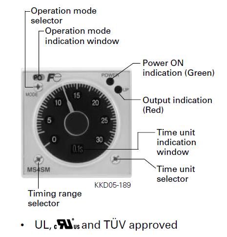 Contact : Timed 2PDT 5A at 250V AC resistive load