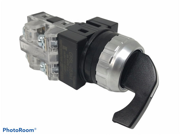 Key Selector Hanyoung Round, 2 Posisi 25 mm Black 1NO+1NC