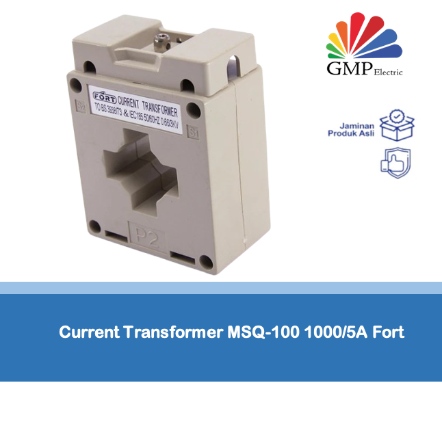Current Transformer Fort MSQ-100 1000/5A adalah CT tipe kotak yang digunakan untuk menurunkan arus primer 1000A menjadi arus sekunder 5A untuk keperluan pengukuran, metering, atau proteksi pada panel listrik. Desainnya kokoh, akurat, dan cocok untuk instalasi distribusi industri.