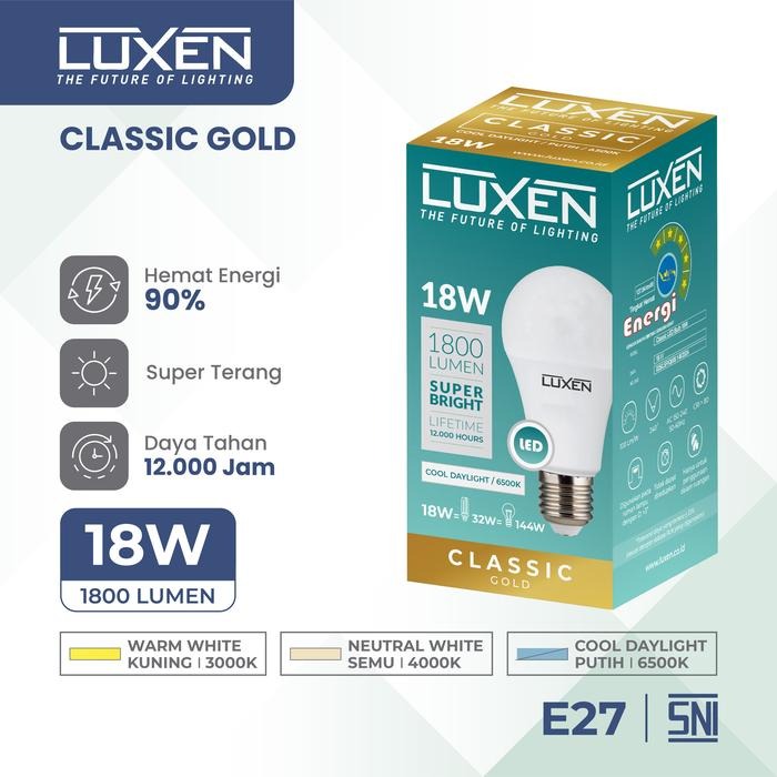 Lampu LED Bulb Luxen Classic 18W CDL 150-240V 100LM/W 6500K